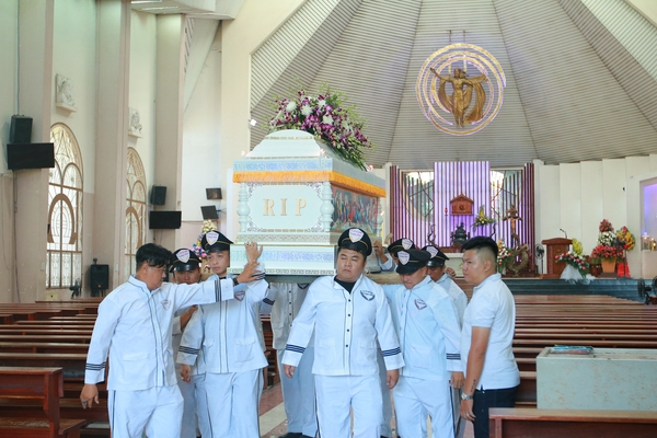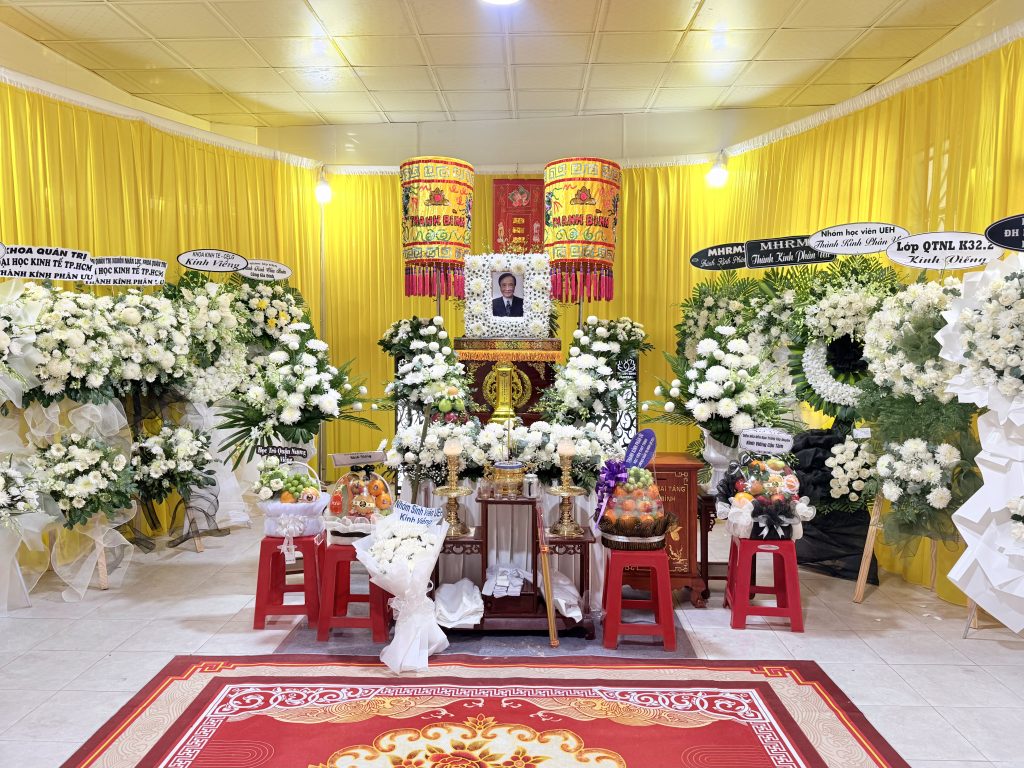 - Hậu cần phục vụ: Cung cấp 20 thùng nước suối, bánh kẹo, 2kg hạt hướng dương và 200 khăn ướt để gia đình và khách sử dụng trong suốt tang lễ.