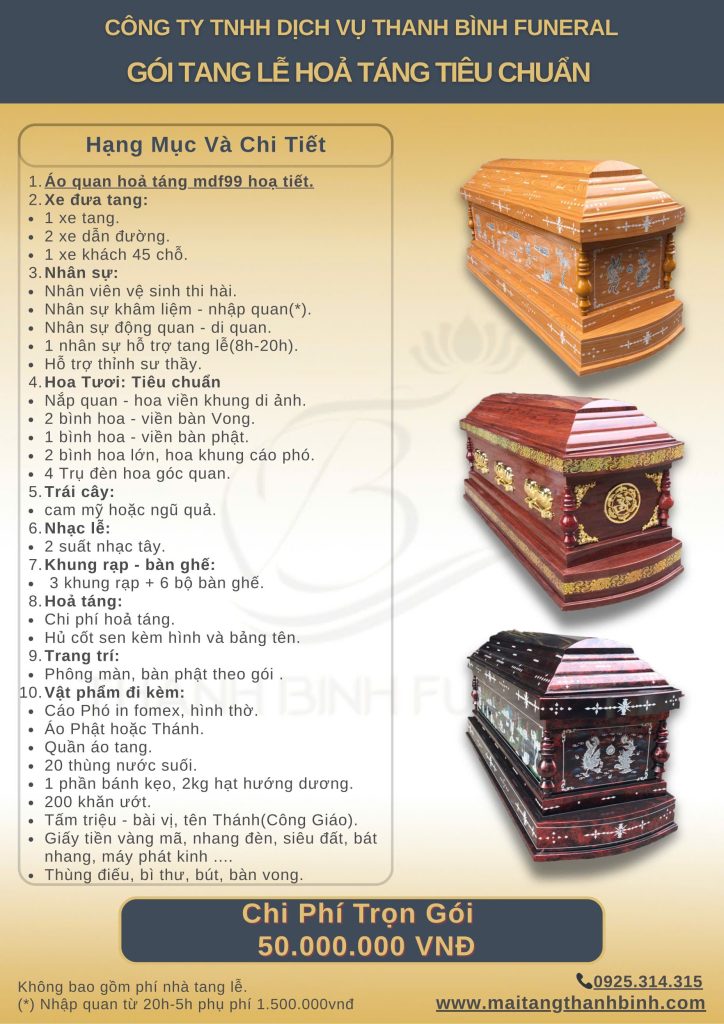 Mai Táng Thanh Bình niêm yết mức phí cho gói hỏa táng Tiêu Chuẩn là 50.000.000 VNĐ